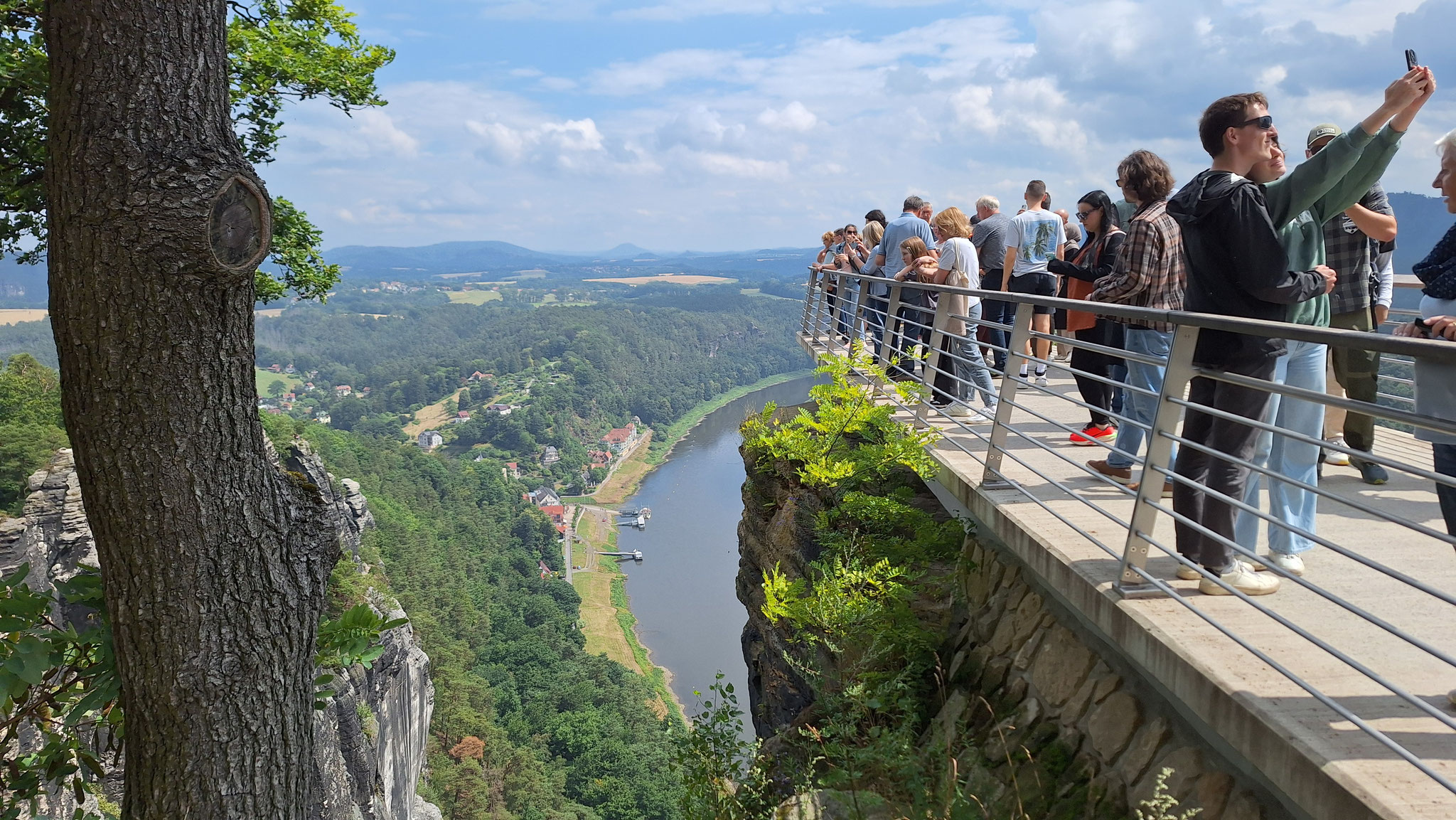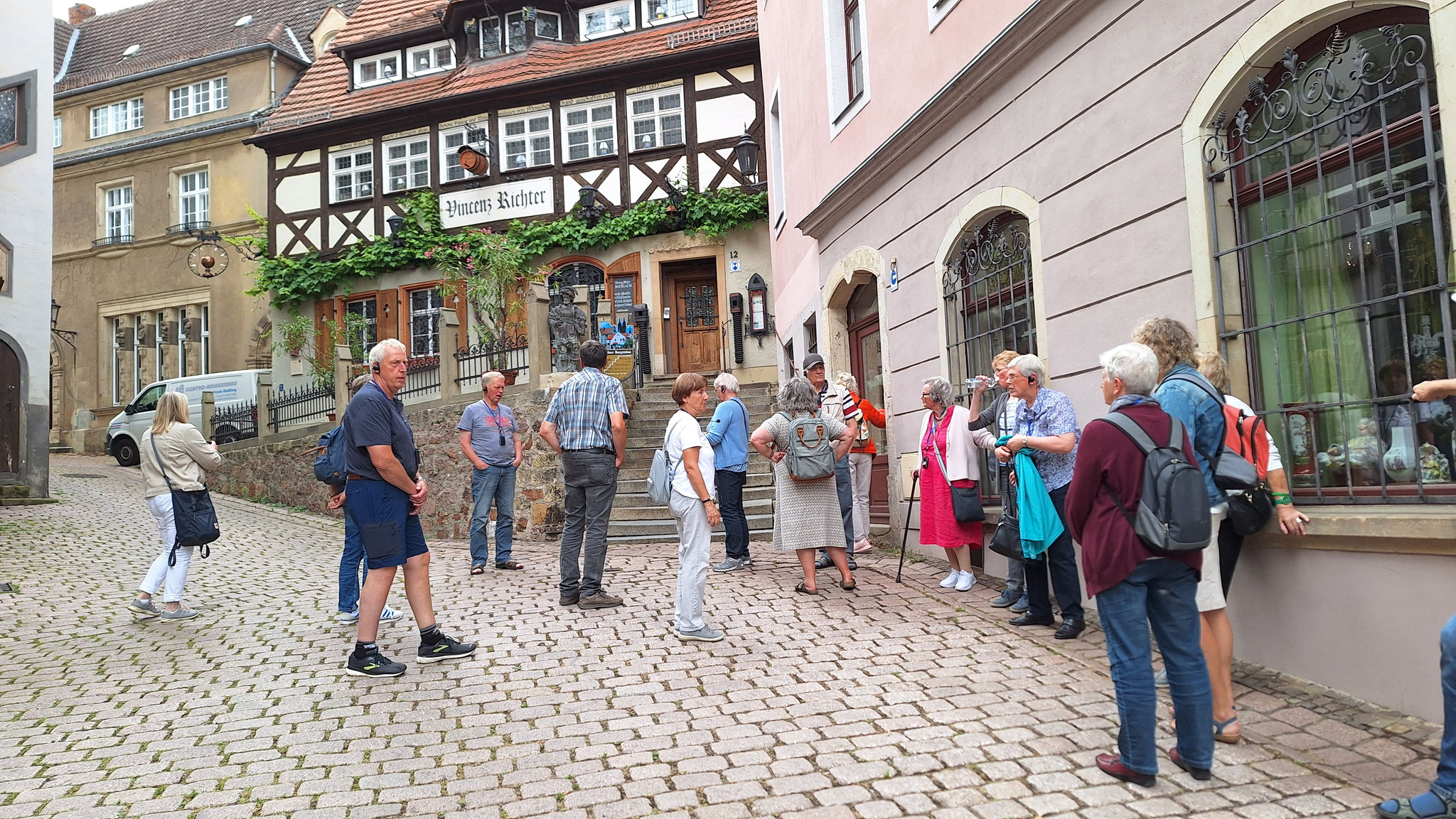Die nächsten Tage waren voll ausgefüllt: Besichtigung der Schauwerkstatt in der Porzellanmanufaktur in Meißen, Auffahrt zur Albrechtsburg und Orgelkonzert im Meißener Dom, Spaziergang durch die Domstadt Meißen, Sektempfang, Wein-Verkostung und Brotzeit auf Schloss Proschwitz, in der Radeberger Brauerei Führung und Verkostung des Radeberger Pils, Ausflug in die grandiose Sächsische Schweiz mit Auffahrt auf den Felsen der Festung Königstein, Zugfahrt mit der nostalgischen Kirnitzschtalbahn vom Lichtenhainer Wasserfall bis in den Kurpark in Bad Schandau. Leider musste die geplante Schifffahrt auf der Elbe wegen Niedrigwasser ausfallen aber der wunderschöne Blick von der Bastei auf das Elbsandsteingebirge hat uns ein wenig getröstet.
